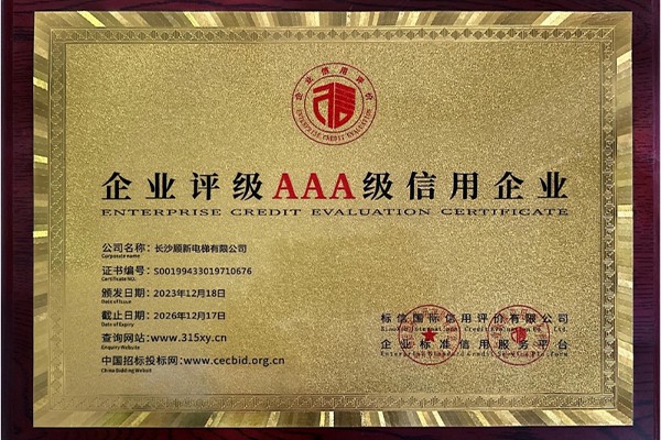 - 2021年,2023年长沙顺新电梯有限公司连续2次被长沙市特种设备协会评为“四星级”维保单位。
